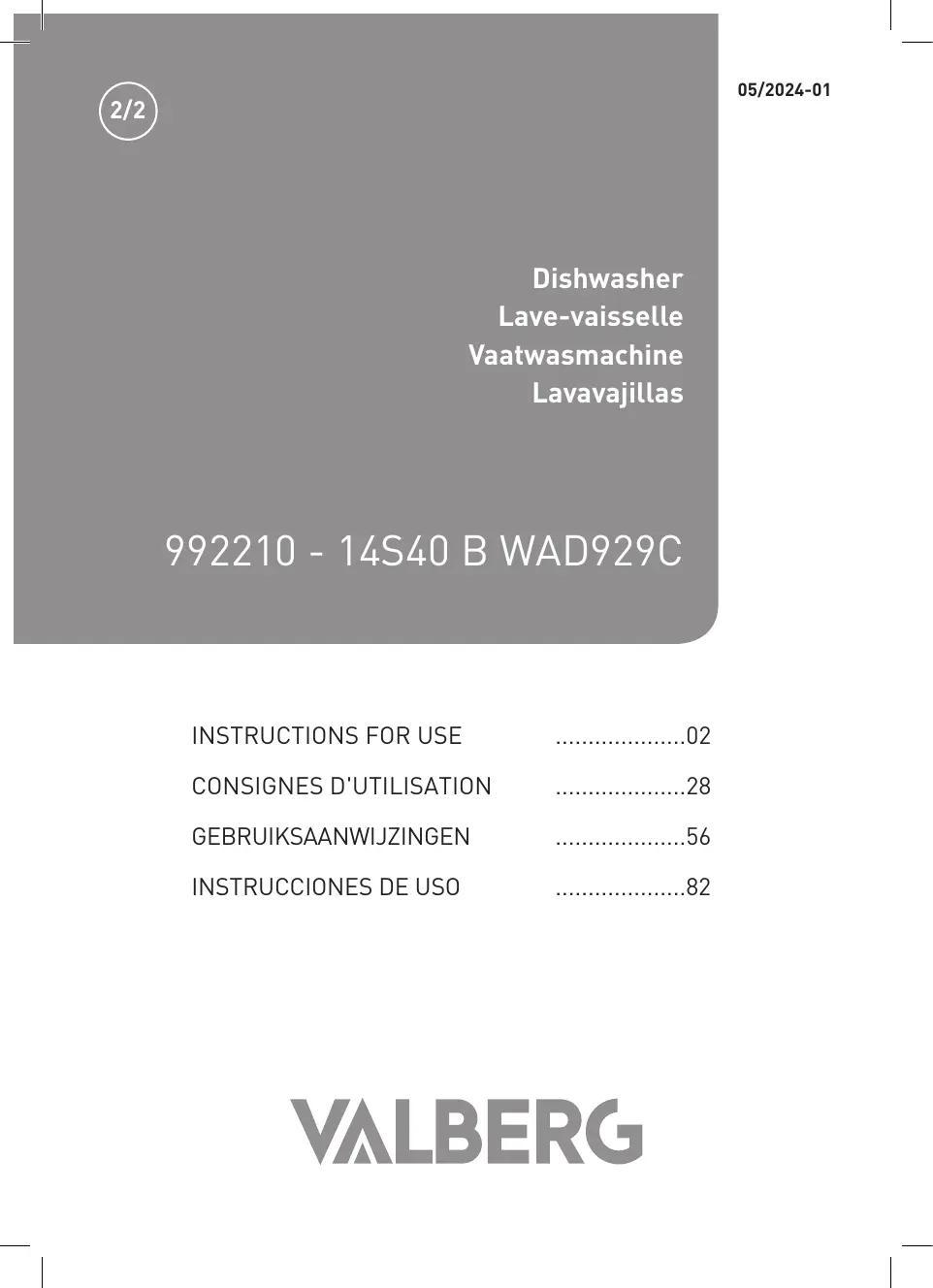 14S40 B WAD929C - Lave-vaisselle VALBERG - Notice d'utilisation et mode d'emploi gratuit