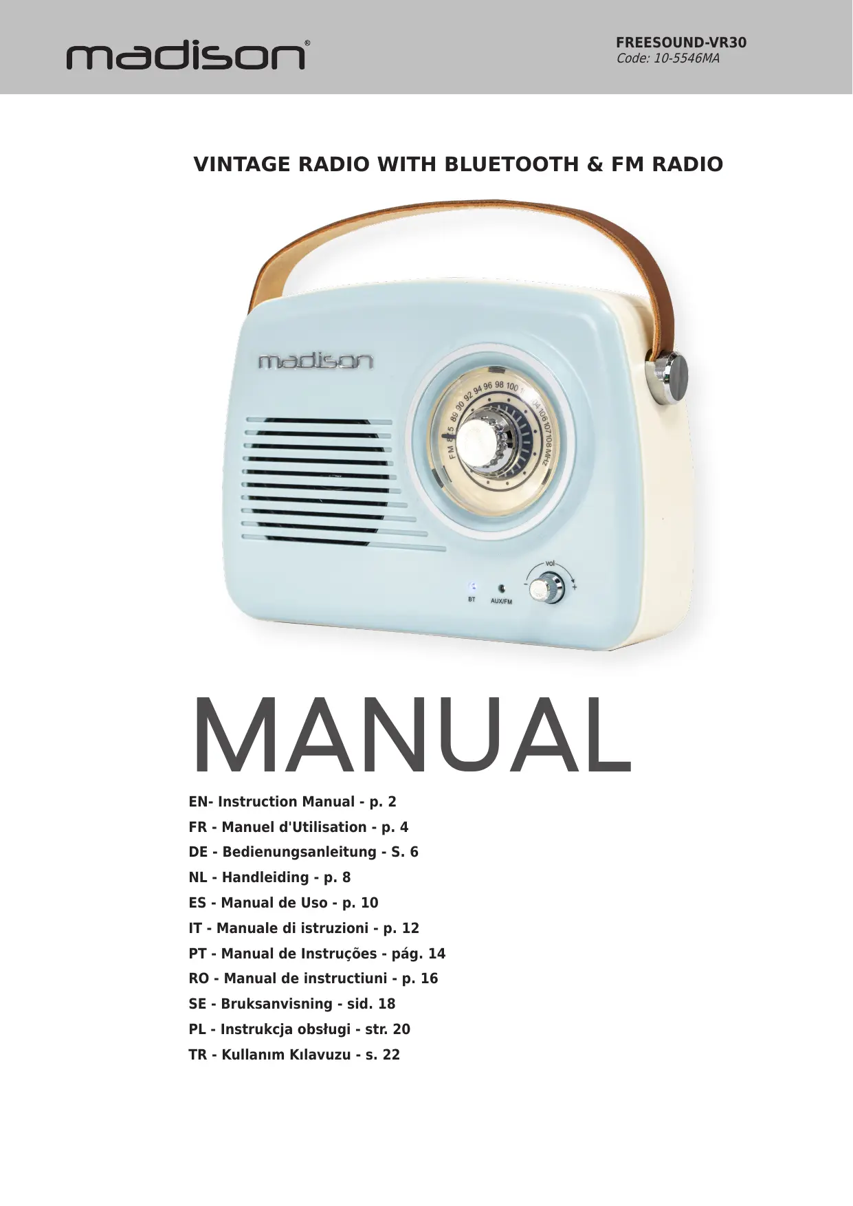 Retrouvez gratuitement la notice de l'appareil FREESOUND VR30 MADISON au format PDF.