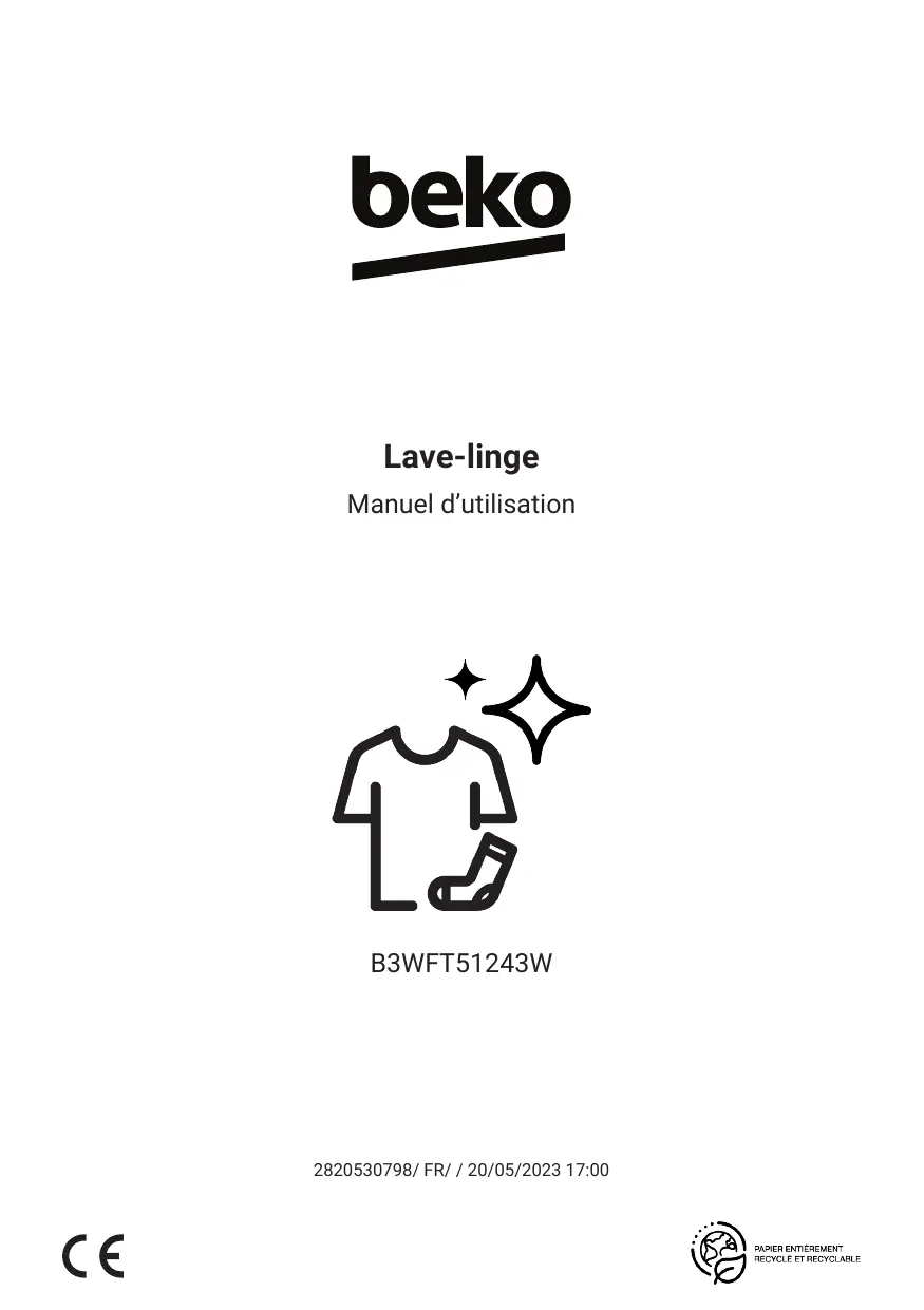 Téléchargez la notice de votre Lave-linge hublot au format PDF gratuitement ! Retrouvez votre notice B3WFT51243W - BEKO et reprennez votre appareil électronique en main. Sur cette page sont publiés tous les documents nécessaires à l'utilisation de votre appareil B3WFT51243W de la marque BEKO.