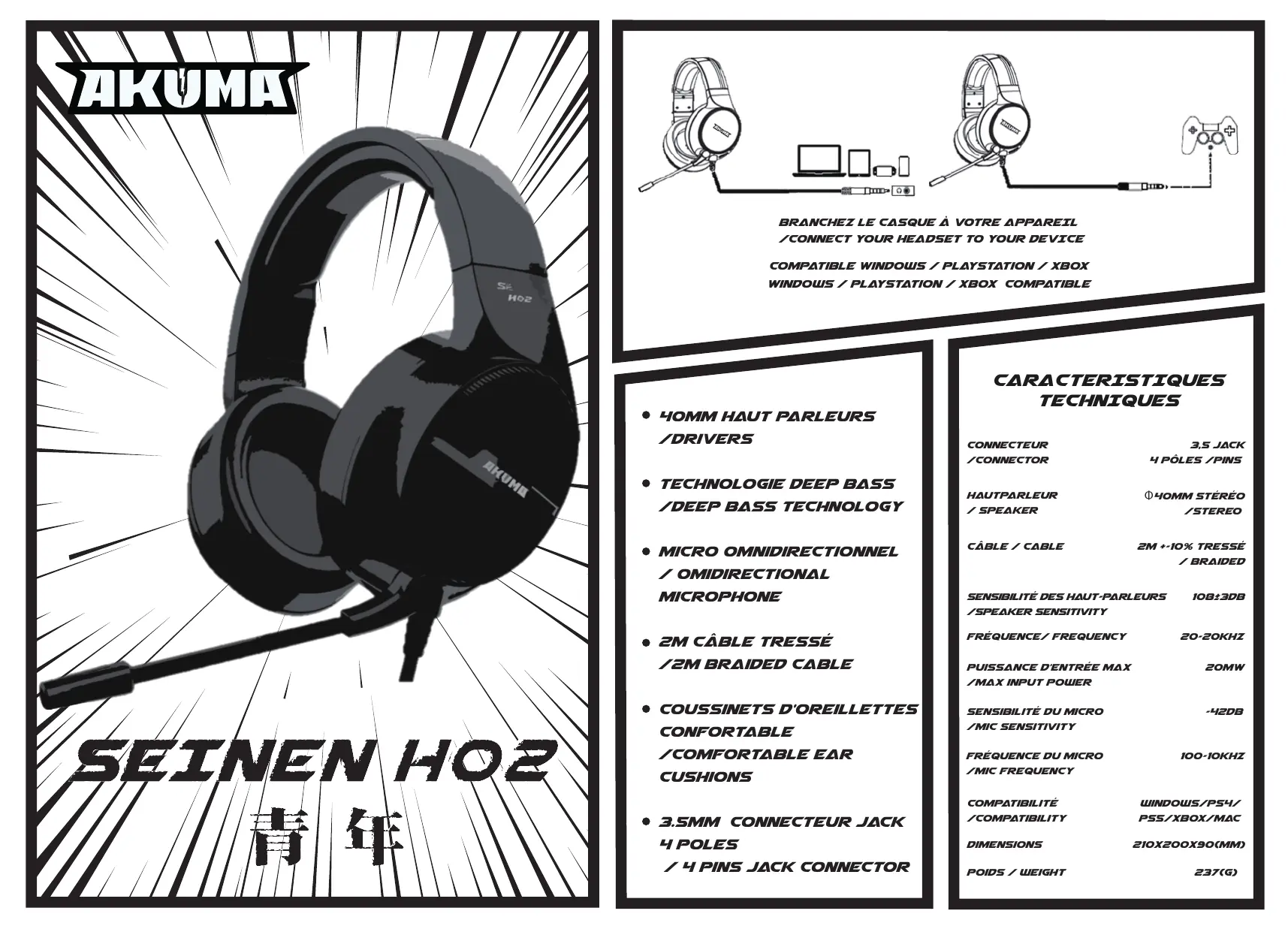H02 - Casque gaming AKUMA - Notice d'utilisation et mode d'emploi gratuit