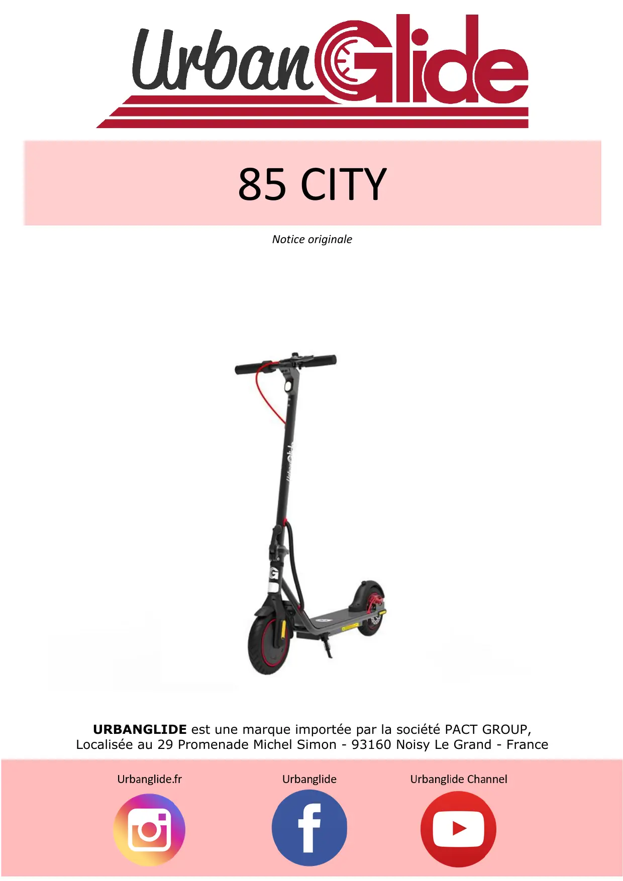 85 City - Trottinette électrique URBANGLIDE - Notice d'utilisation et mode d'emploi gratuit