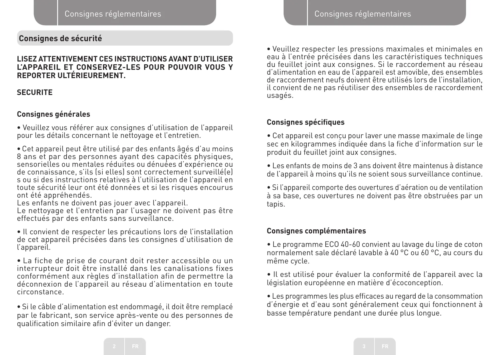 (| Consignes réglementaires