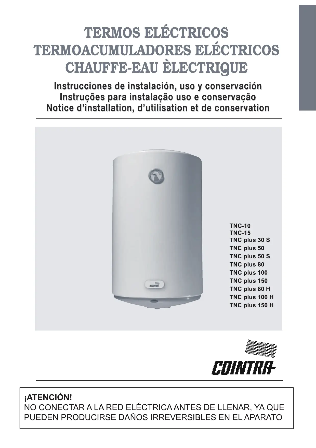 TNC-10, TNC-15, TNC plus 30 S, TNC plus 50, TNC plus 50 S, TNC plus 80, TNC plus 100, TNC plus 150, TNC plus 80 H, TNC plus 100 H, TNC plus 150 H - Chauffe-eau COINTRA - Notice d'utilisation et mode d'emploi gratuit