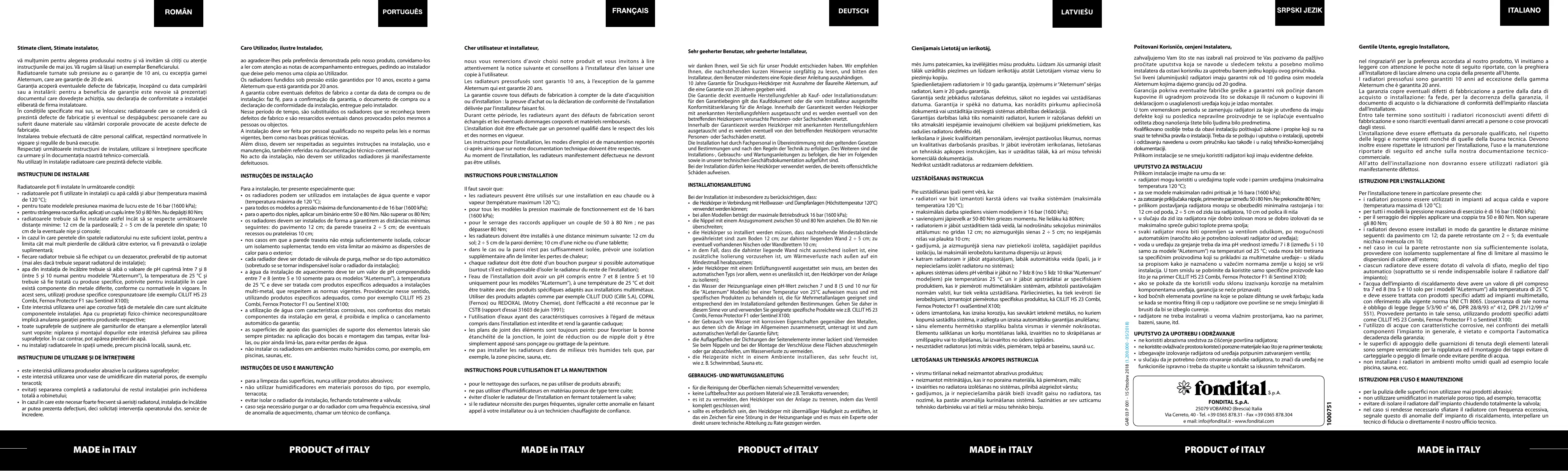 MADE in ITALY DEUTSCH Sehr geeherter Benutzer, sehr geeherter Installateur,