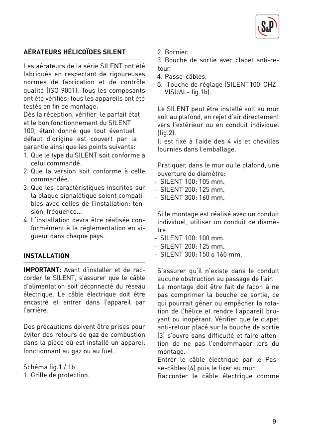 Retrouvez gratuitement la notice de l'appareil Kit silent 100 CZ 12V 100 mm S&P au format PDF.