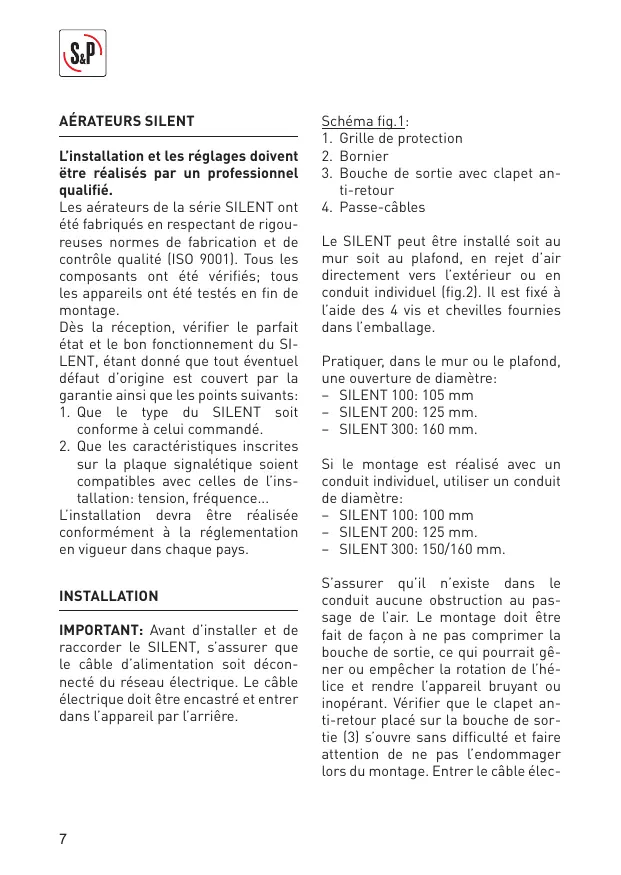 SERIE SILENT CHZ - Silent 300 150 mm - Aérateur salle de bain S&P - Notice d'utilisation et mode d'emploi gratuit