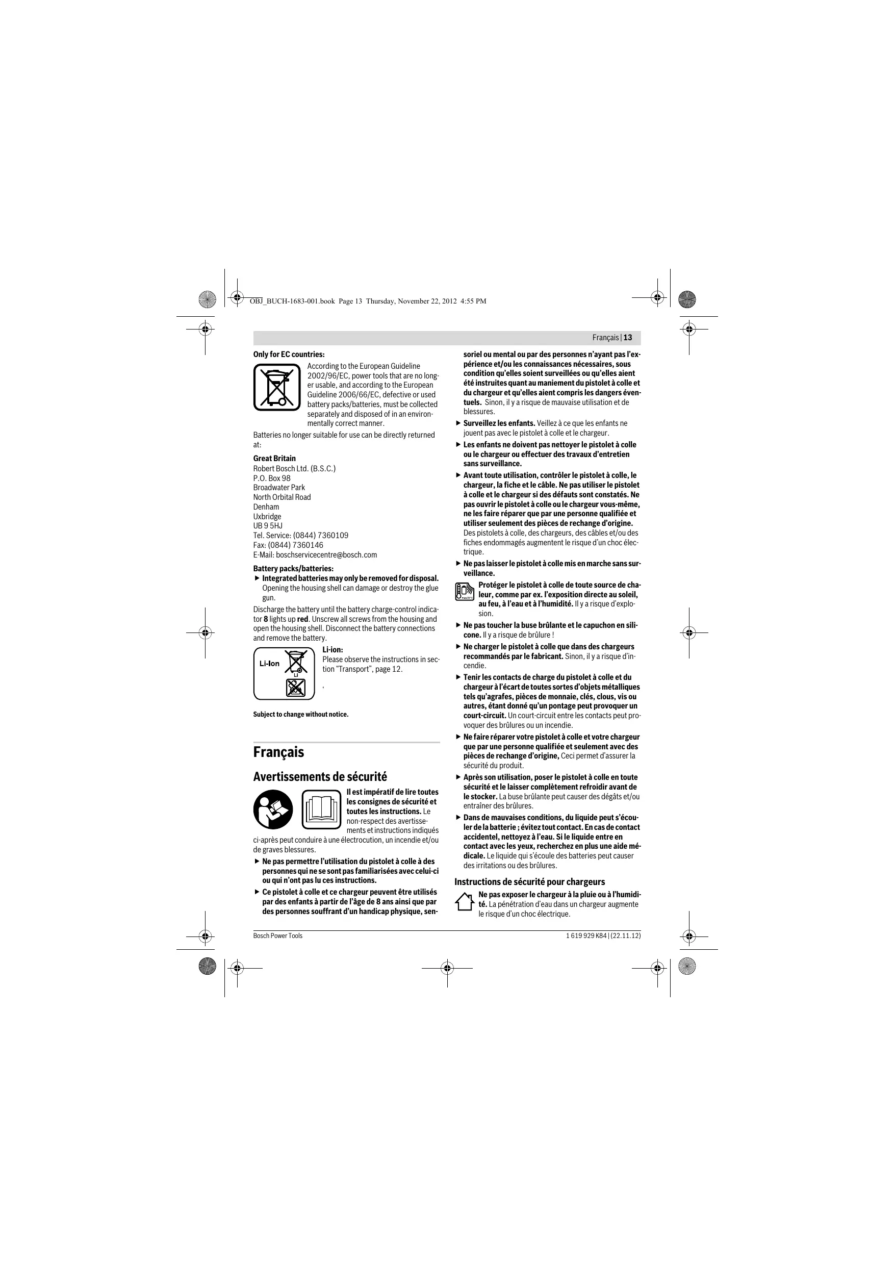 &] soires et emballages, doivent pouvcirsuivre chacun une voie de recyclage appropriée. Ne jetez pas les pistolets à colle, les chargeurs etes ac- cus/piles avec les ordures ménagères !