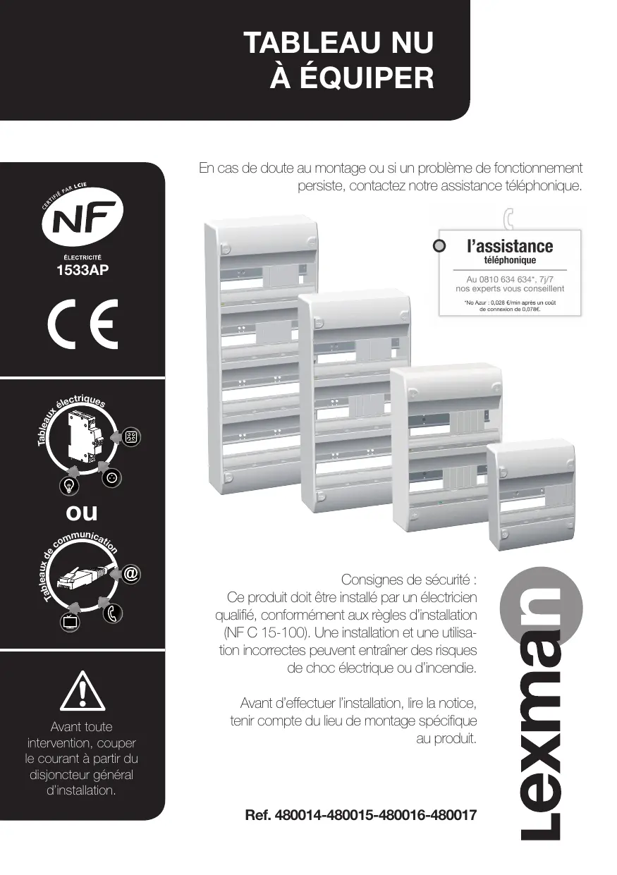 MODE D'EMPLOI Tableau électrique nu 1 rangée 13 modules . 480014-480015-480016-480017 LEXMAN