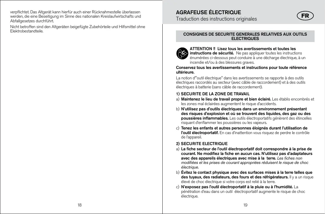 La notion d'outil électrique" dans les avertissements se rapporte à des outils électriques raccordés au secteur (avec câble de raccordement) et à des outils électriques à batterie (sans câble de raccordement)