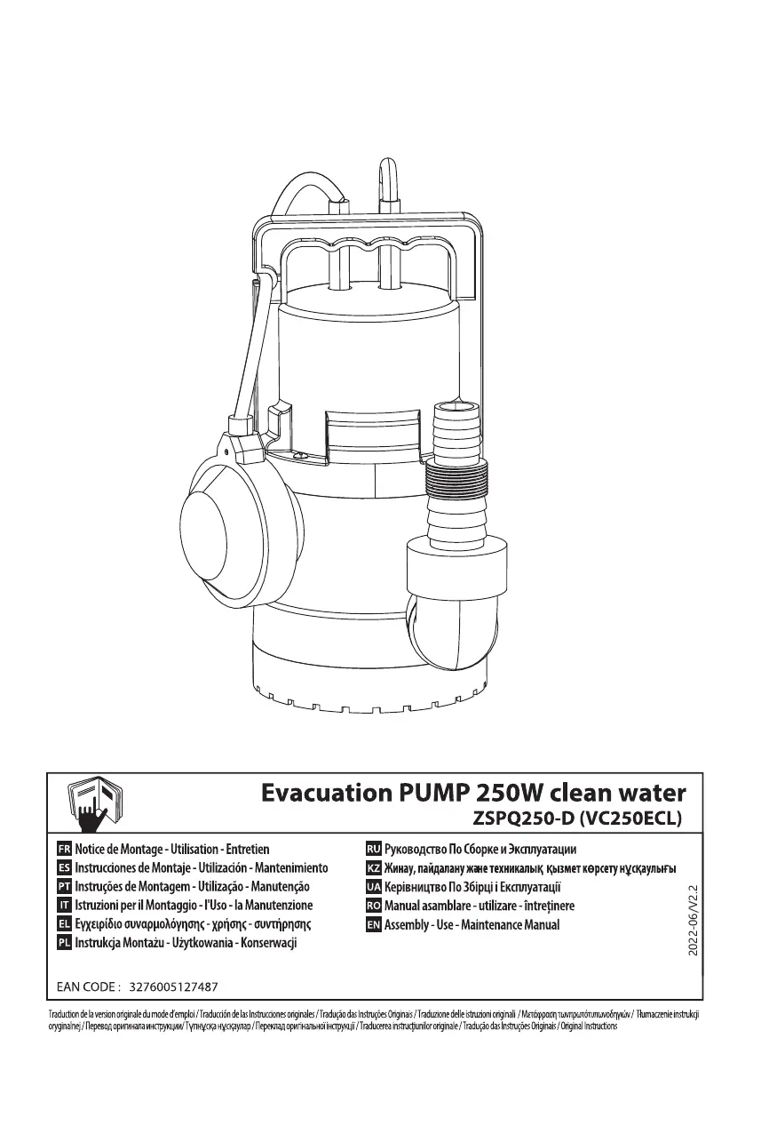 ZSPQ250-D (VC250ECL) - Pompe d'évacuation ADEO - Notice d'utilisation et mode d'emploi gratuit