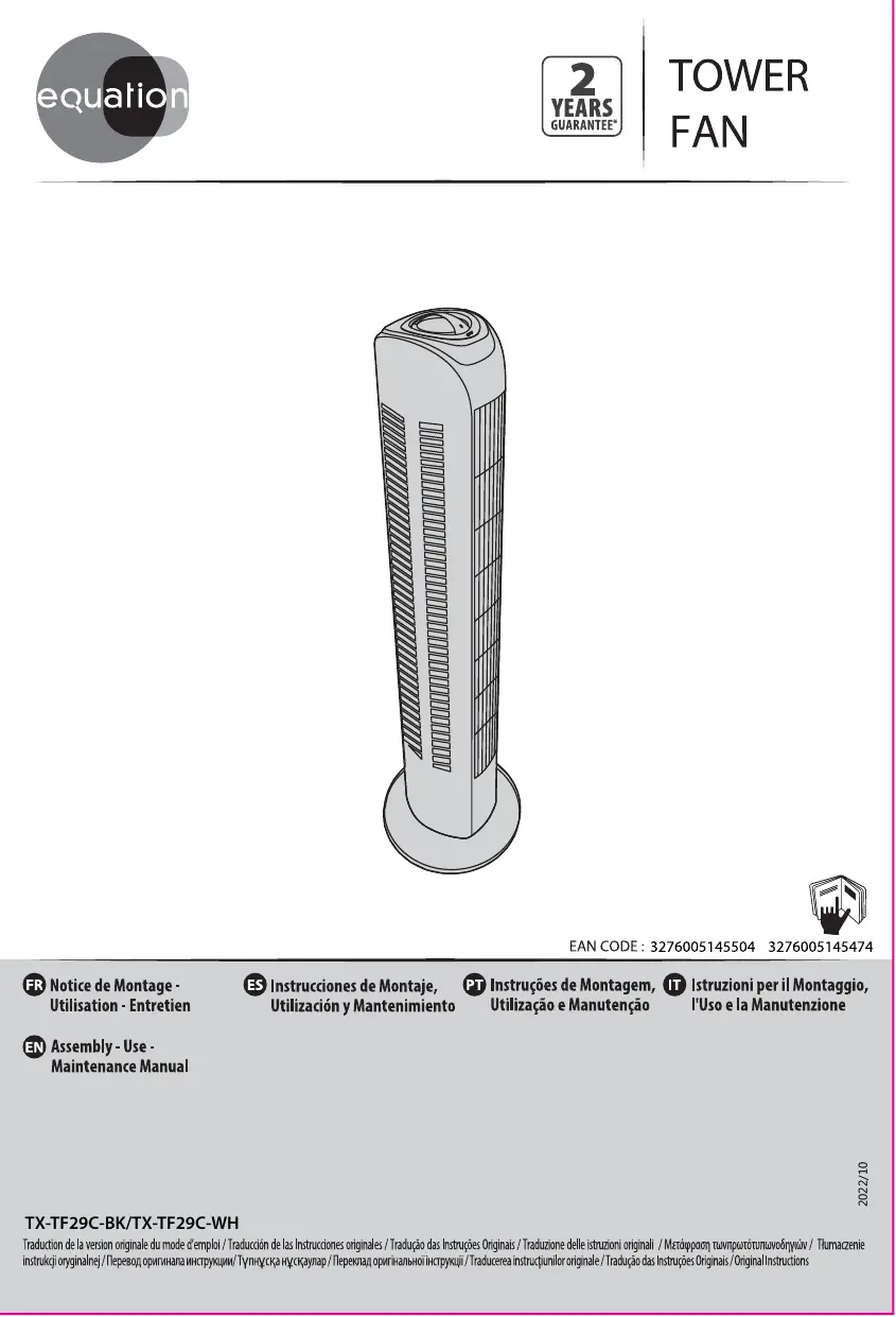 TOWER BLANC TX-TF29C-BK/TX-TF29C-WH - Colonne d'air EQUATION - Notice d'utilisation et mode d'emploi gratuit