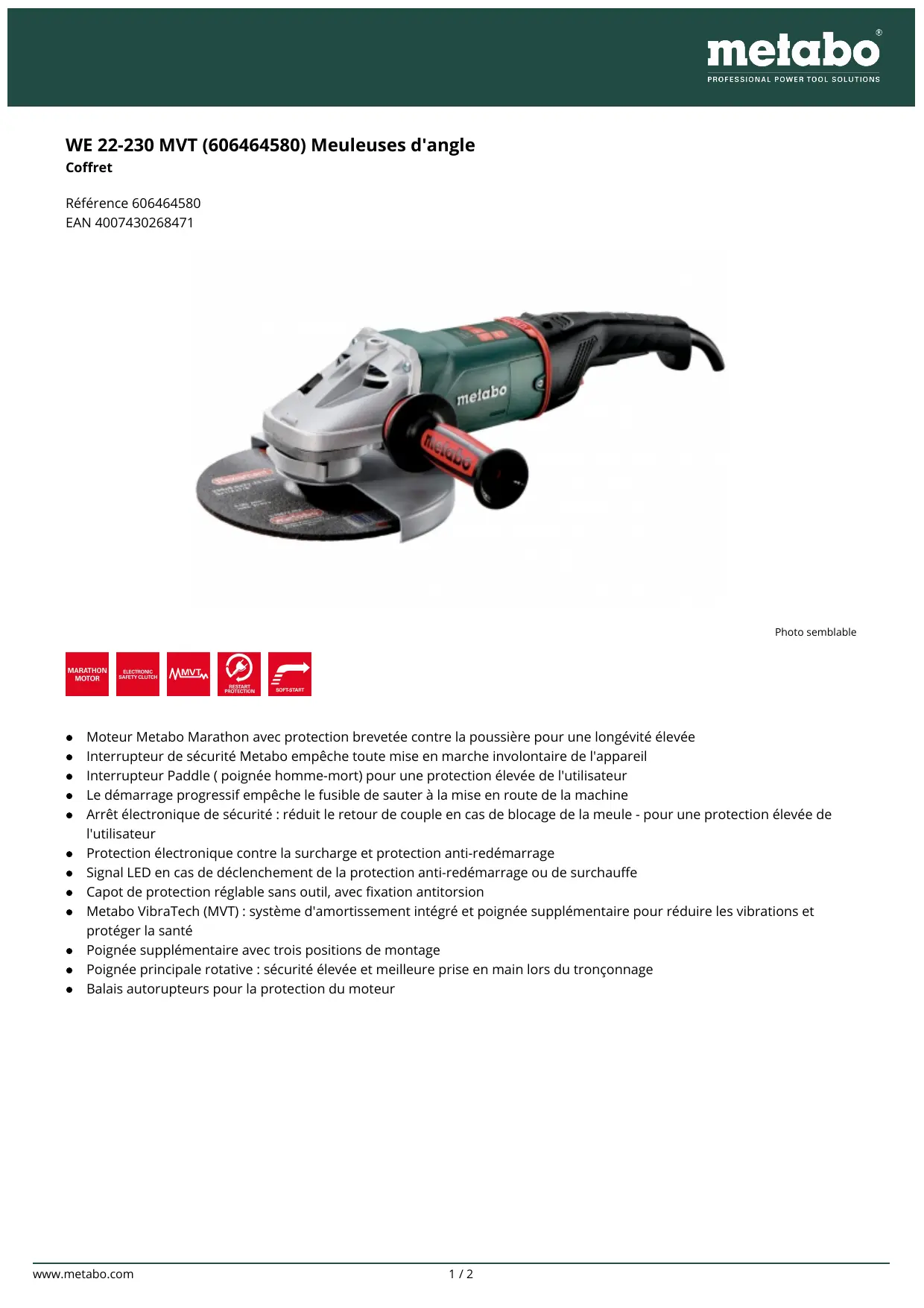 Retrouvez gratuitement la notice de l'appareil WE 22-230 MVT METABO au format PDF.