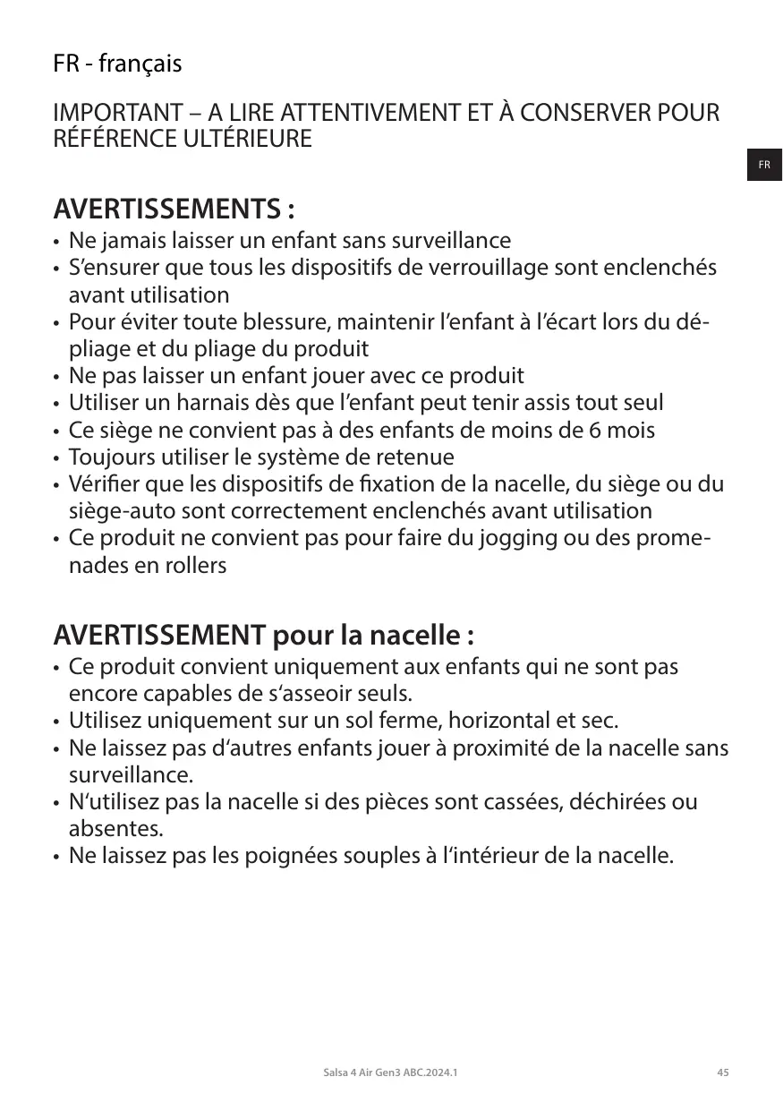 Retrouvez gratuitement la notice de l'appareil SALSA 4 AIR ABC DESIGN au format PDF.