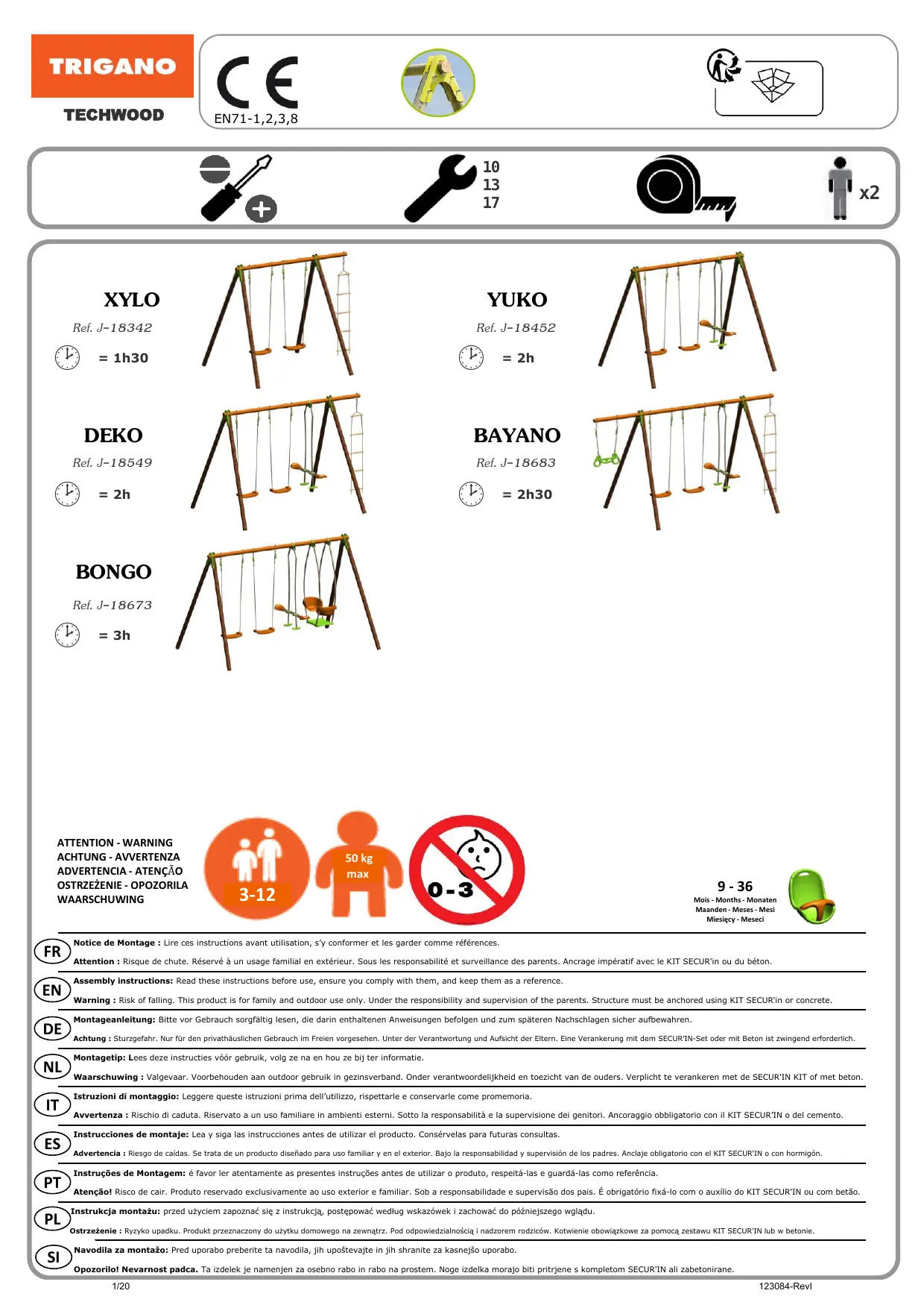 Attention : Risque de chute. Réservé à un usage familial en extérieur. Sous la responsabilité et surveillance des parents. Ancrage impératif avec le KIT SECUR'in ou du béton.