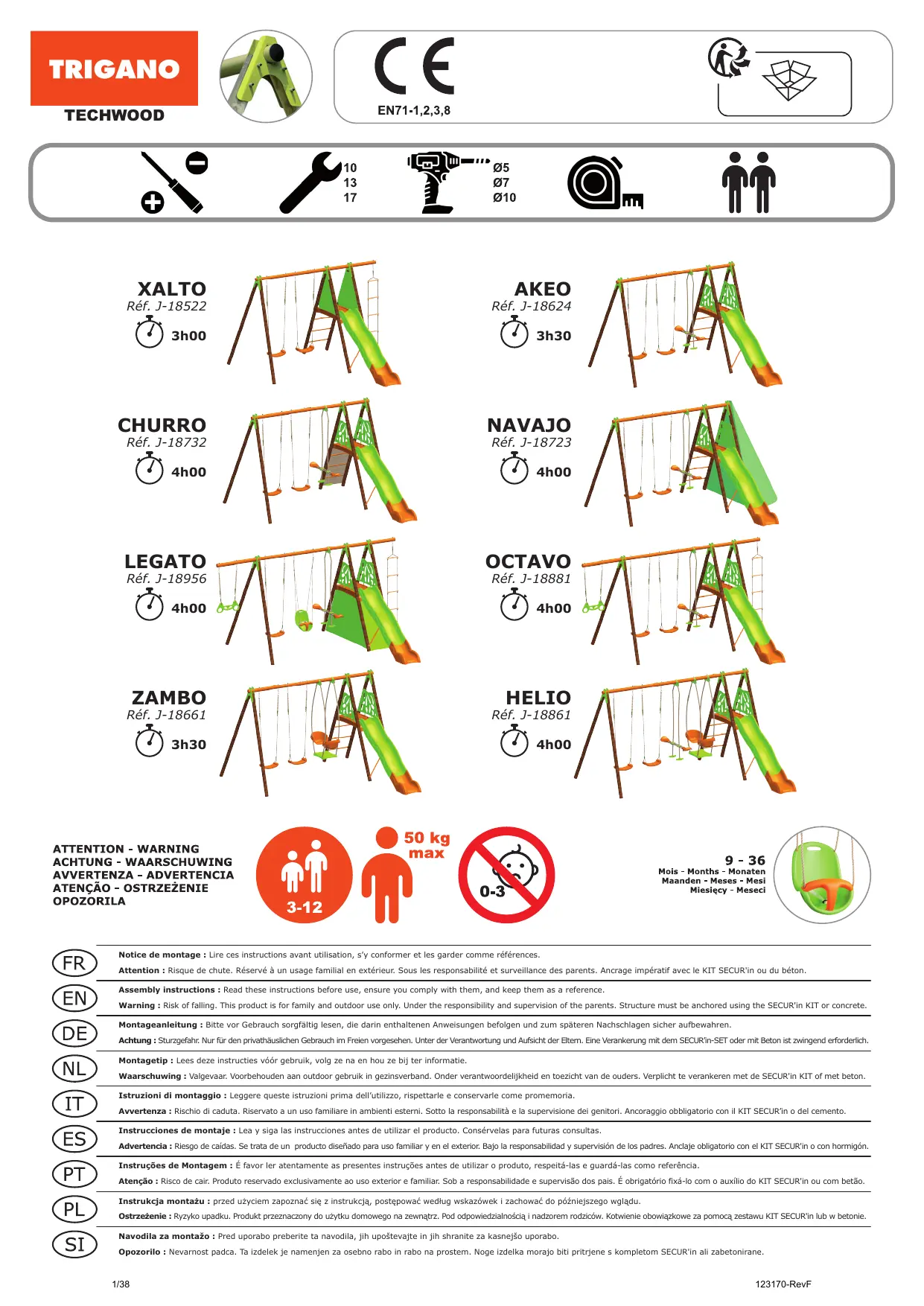 Attention : Risque de chute. Réservé à un usage familial en extérieur. Sous la responsabilité et surveillance des parents. Ancrage impératif avec le KIT SECUR'in ou du béton.