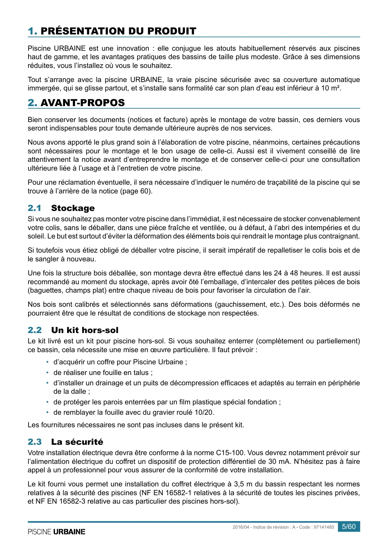 PISCINE URBAINE 2016/04 - Indice de révision : A - Code : 97141480 Lee]