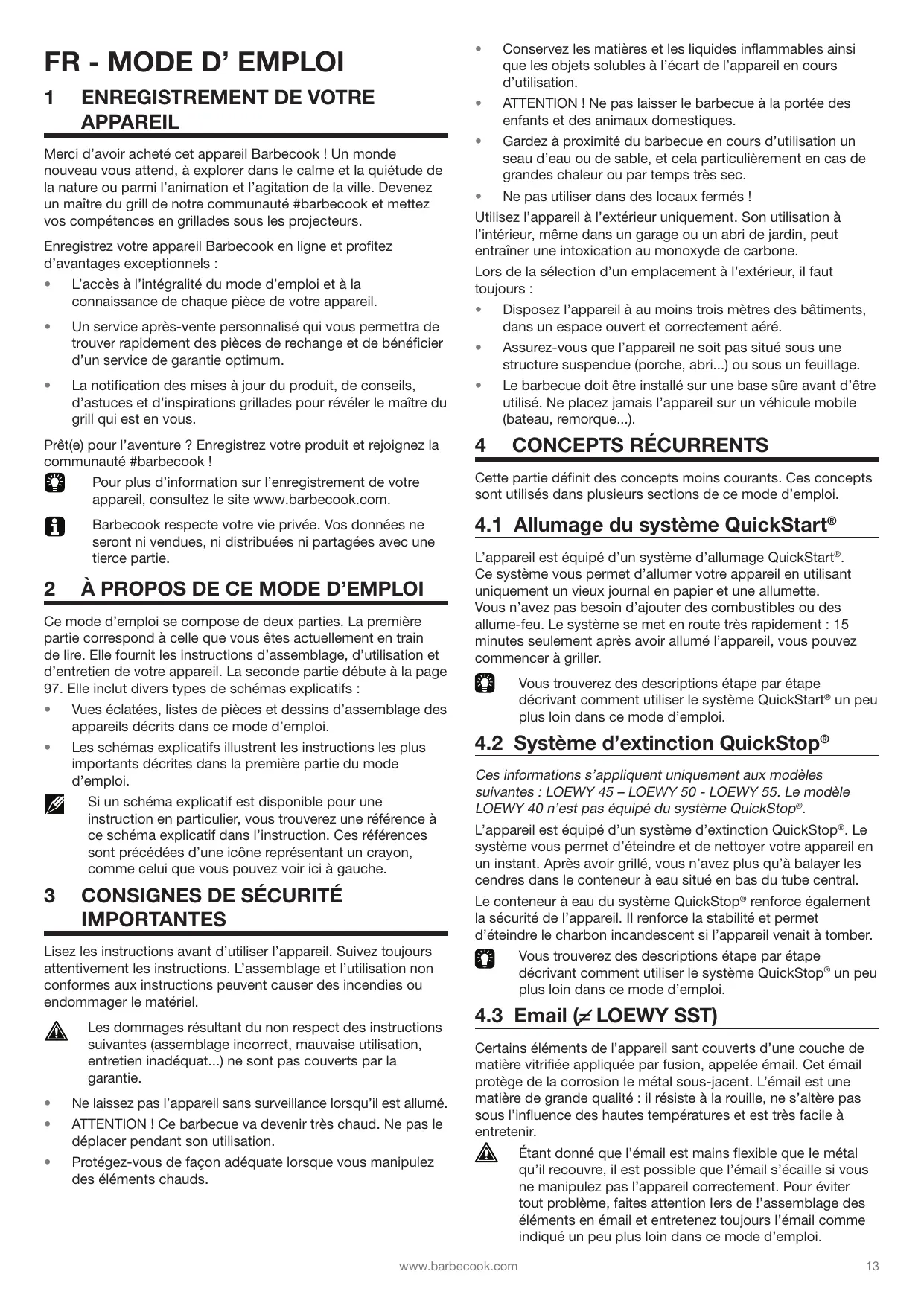Retrouvez gratuitement la notice de l'appareil LOEWY 40, LOEWY 45, LOEWY 50 / 50 SST, LOEWY 55 / 55 SST BARBECOOK au format PDF.