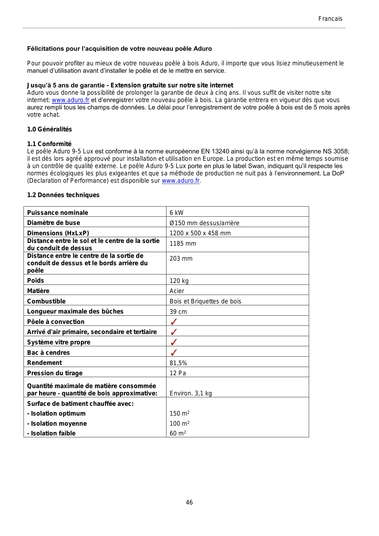 9.5 - Poêle à bois ADURO - Notice d'utilisation et mode d'emploi gratuit