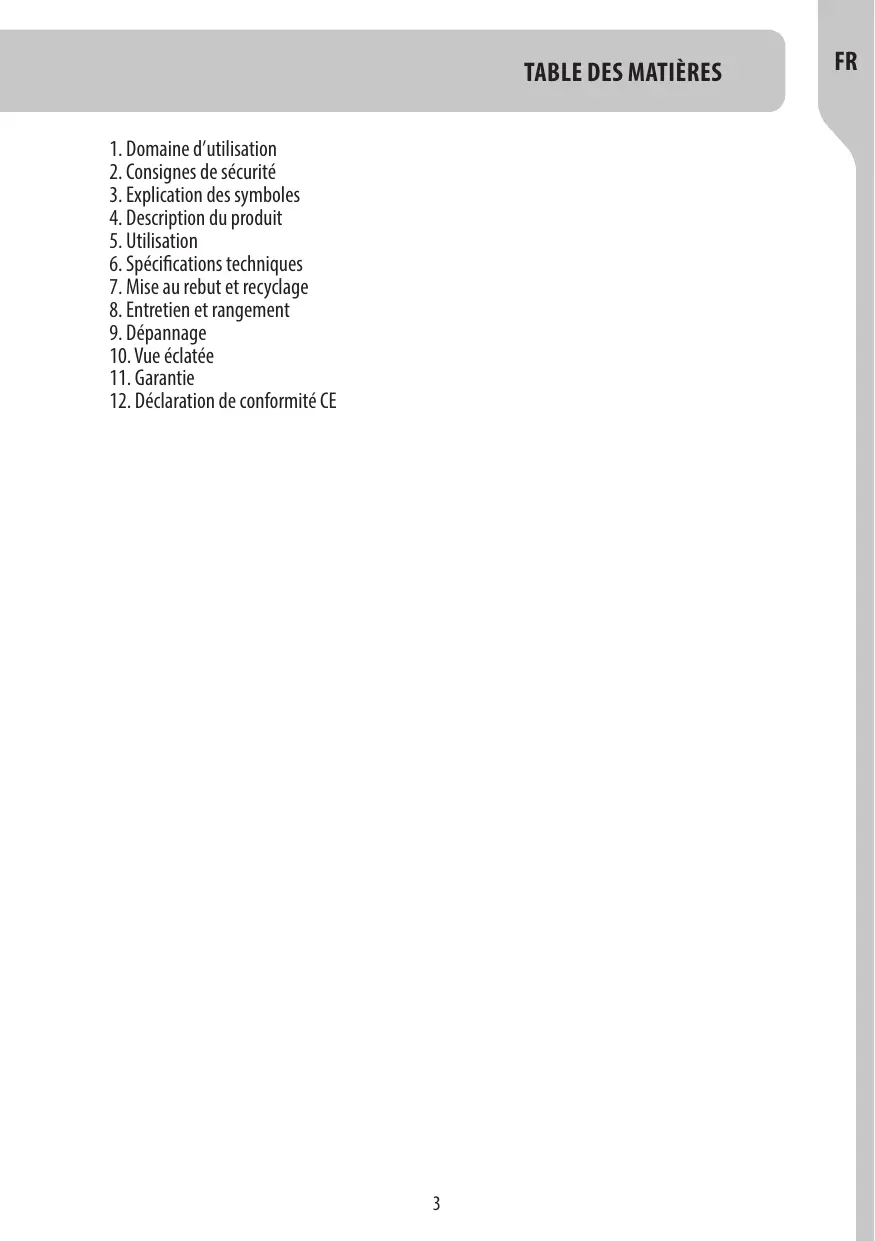 Les problèmes qui découlent de l'usure ou d'un usage impropre ne sont pas couverts par la garantie. Cela comprend entre autres les interrupteurs, les coupe-circuit de protection et les moteurs, dans le cas de l'usure.