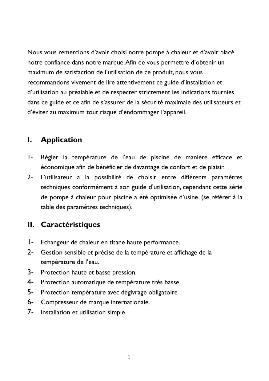 2- L'utilisateur a la possibilité de choisir entre différents paramètres techniques conformément à son guide d'utilisation, cependant cette série de pompe à chaleur pour piscine a été optimisée d'usine. (se référer à la table des paramètres techniques).
