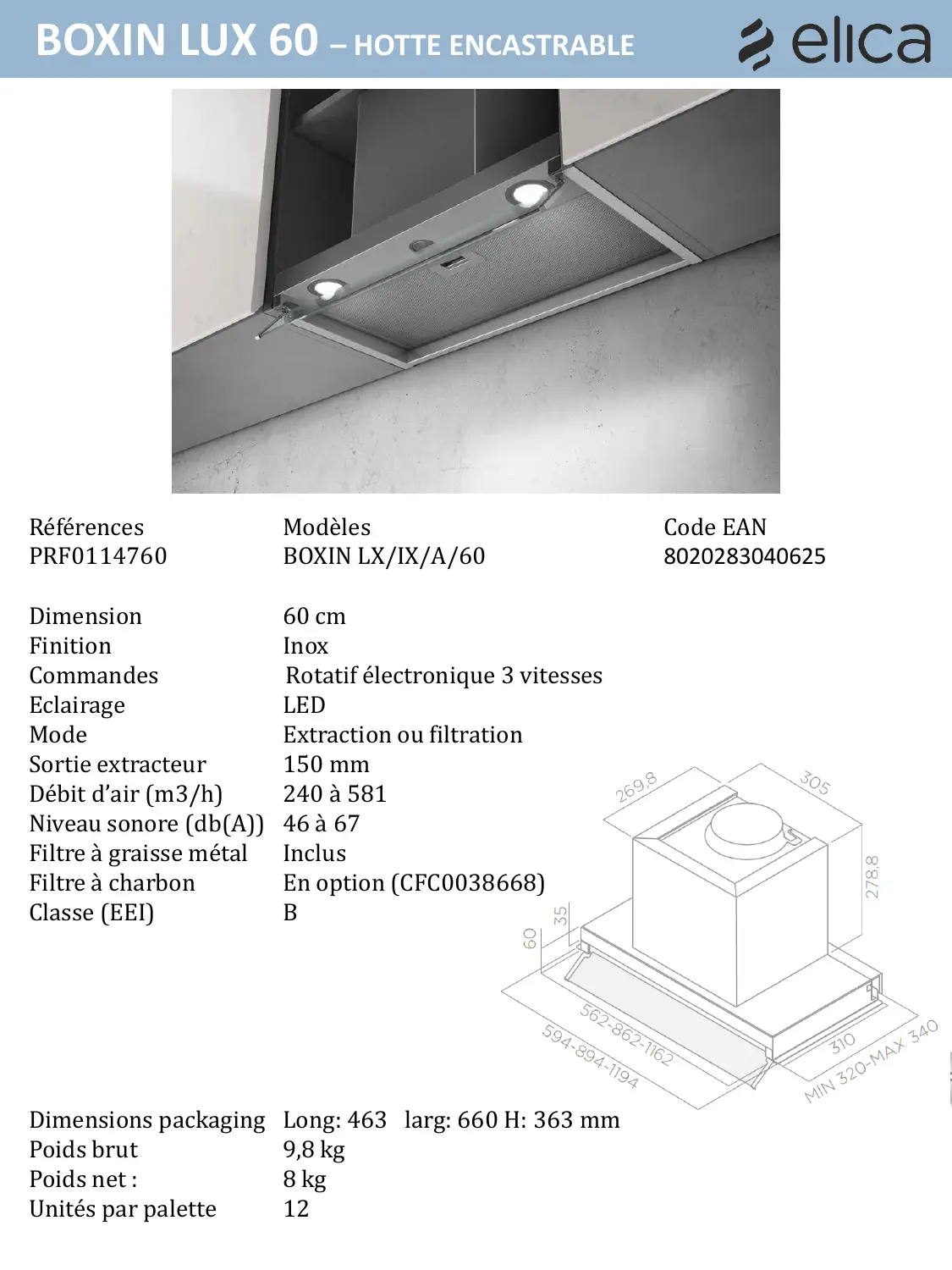 Retrouvez gratuitement la notice de l'appareil BOXIN LX/IX/A/60 ELICA au format PDF.