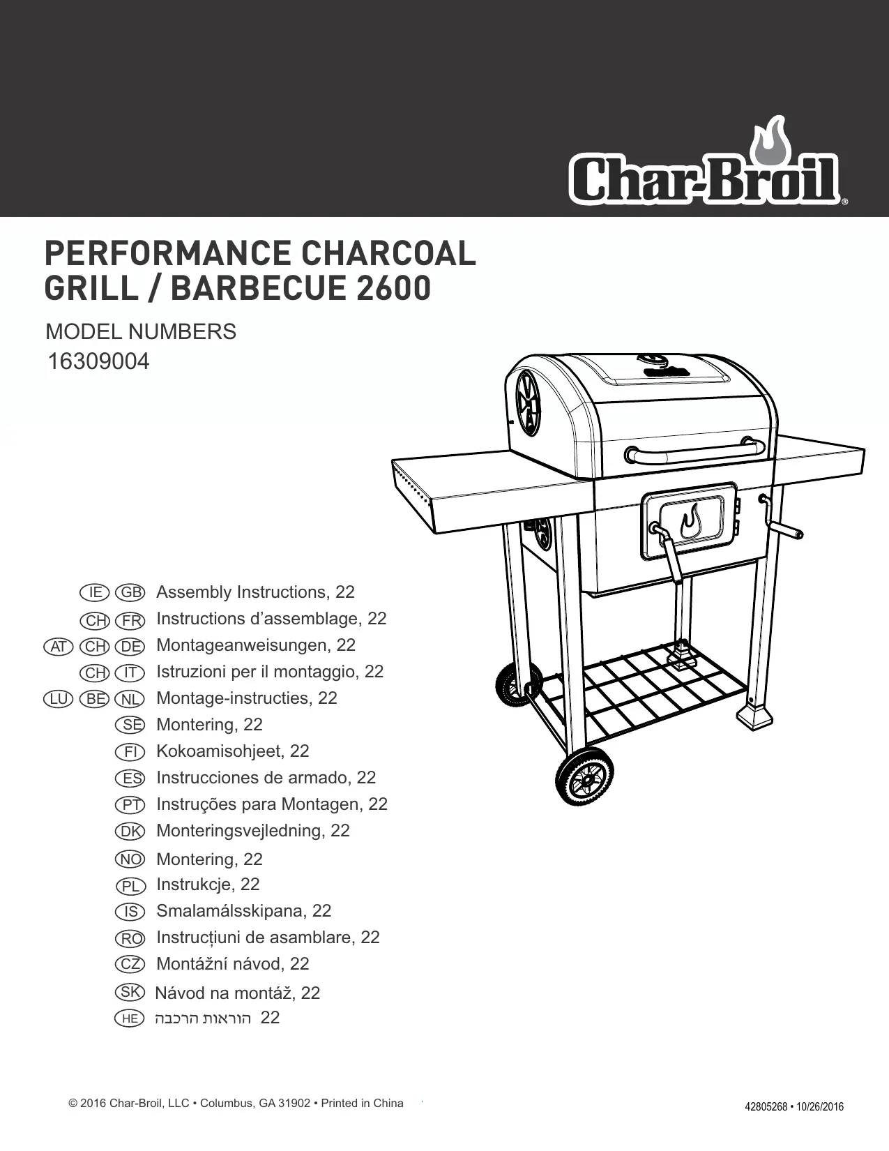 PERFORMANCE 2600 - Barbecue charbon de bois CHAR BROIL - Notice d'utilisation et mode d'emploi gratuit