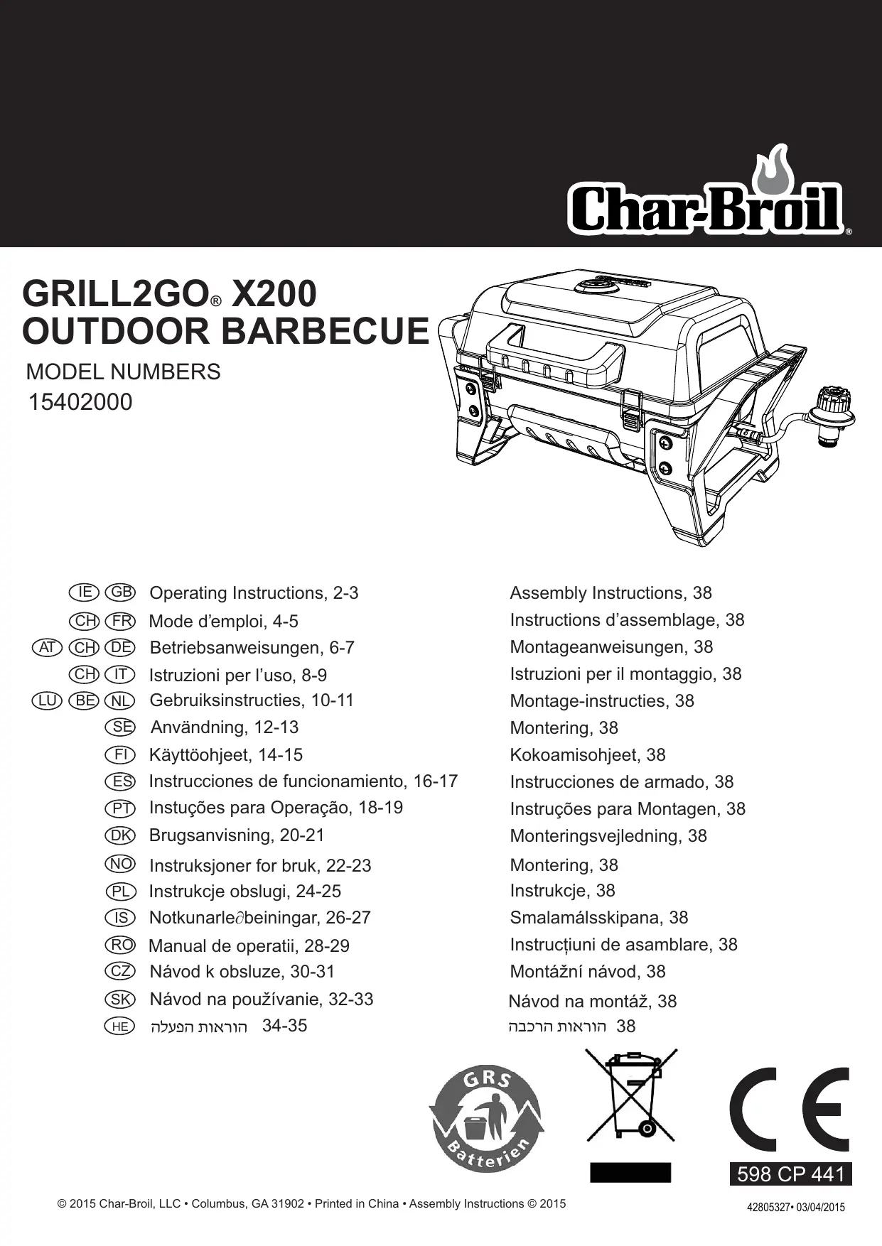 Retrouvez gratuitement la notice de l'appareil GRILL2GO X200 CHAR BROIL au format PDF.