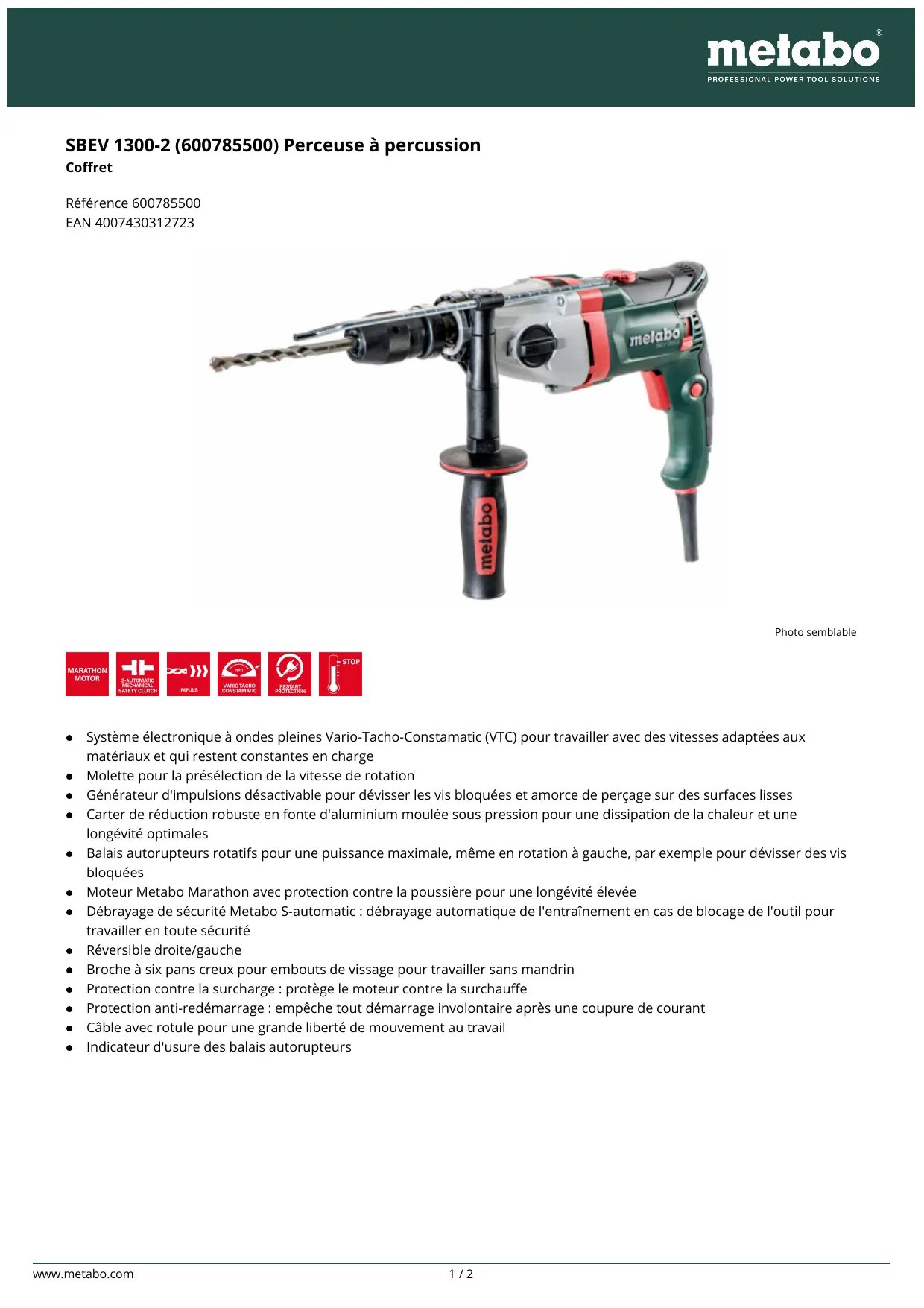 Téléchargez la notice de votre Perceuse à percussion au format PDF gratuitement ! Retrouvez votre notice SBEV 1300-2 - METABO et reprennez votre appareil électronique en main. Sur cette page sont publiés tous les documents nécessaires à l'utilisation de votre appareil SBEV 1300-2 de la marque METABO.