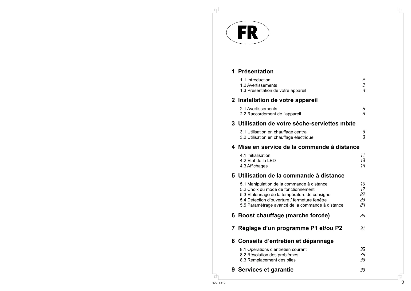 La garantie de votre sèche-serviettes mixte ne s'applique que sous les réserves suivantes :