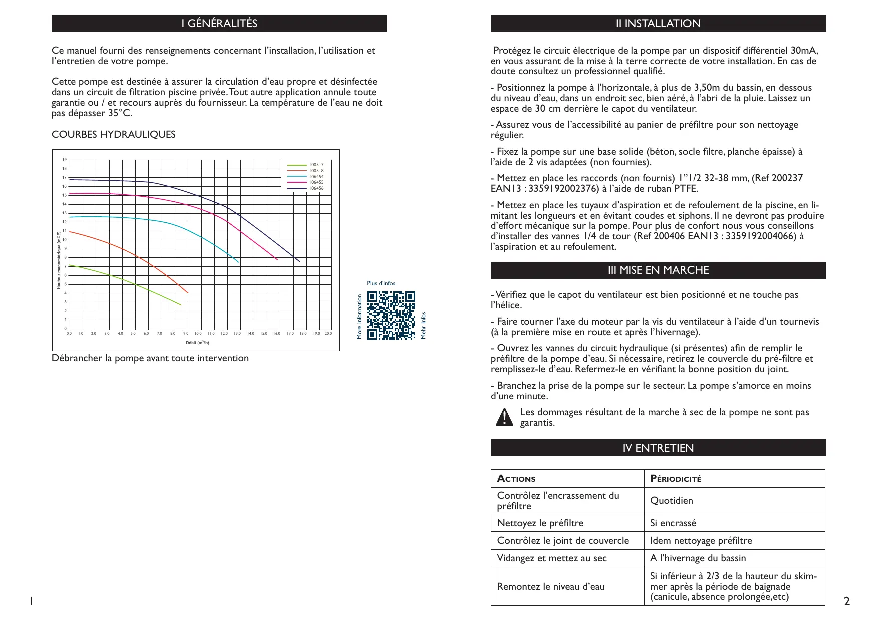 FOIRE AUX QUESTIONS - : 106454 POMPE AQX 3/4 12.9M3/H - : 106455 POMPE AQX 1 15.9M3/H - 106456 POMPE AQX 1.5 17.4M3/H AQUALUX