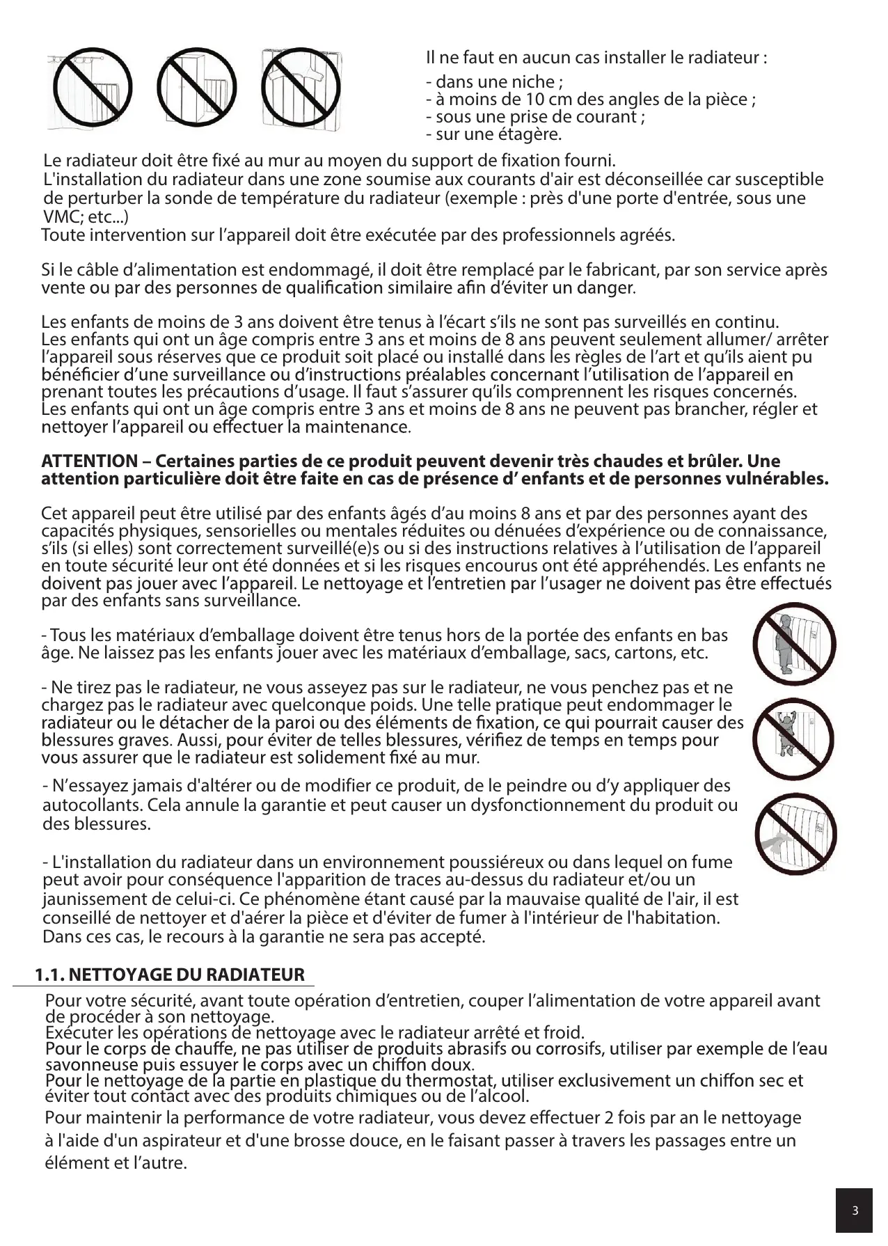 1.1. NETTOYAGE DU RADIATEUR Pour votre sécurité, avant toute opération d'entretien, couper l'alimentation de votre appareil avant de procéder à son nettoyage.