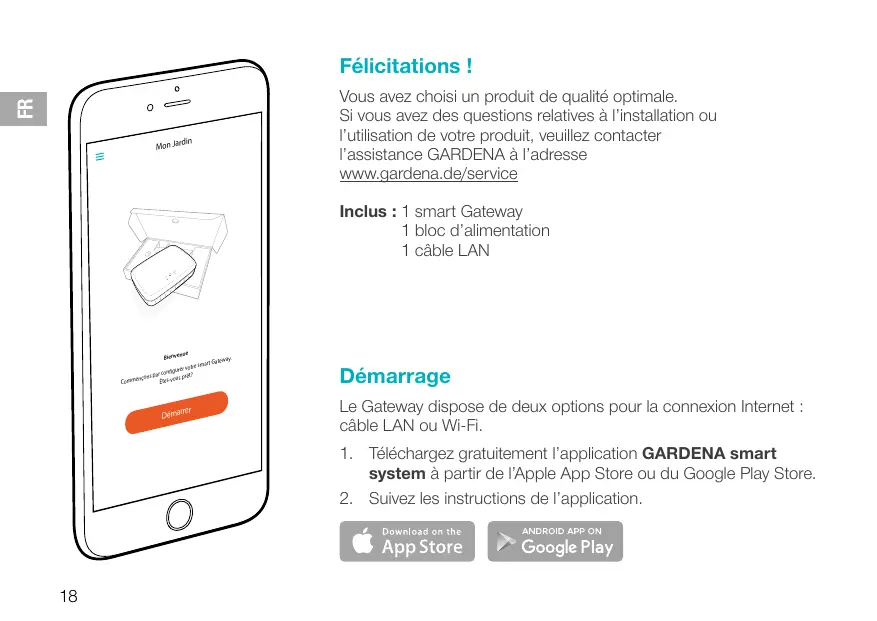 Téléchargez l'application GARDENA smart system à partir de l'Apple App Store où du Google Play Store.