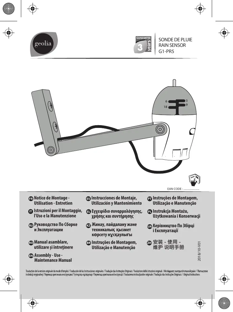 G1-PR5 - Sonde d'humidité de pluie GEOLIA - Notice d'utilisation et mode d'emploi gratuit