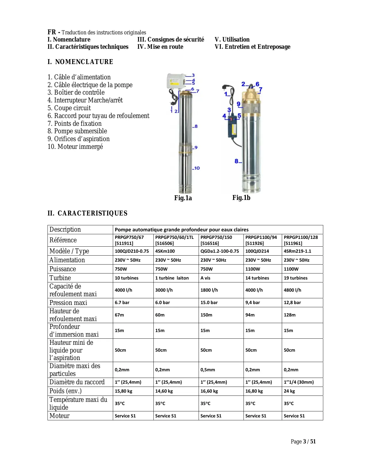 | Description | Pompe automatique grande profondeur pour eaux claires | ||||
