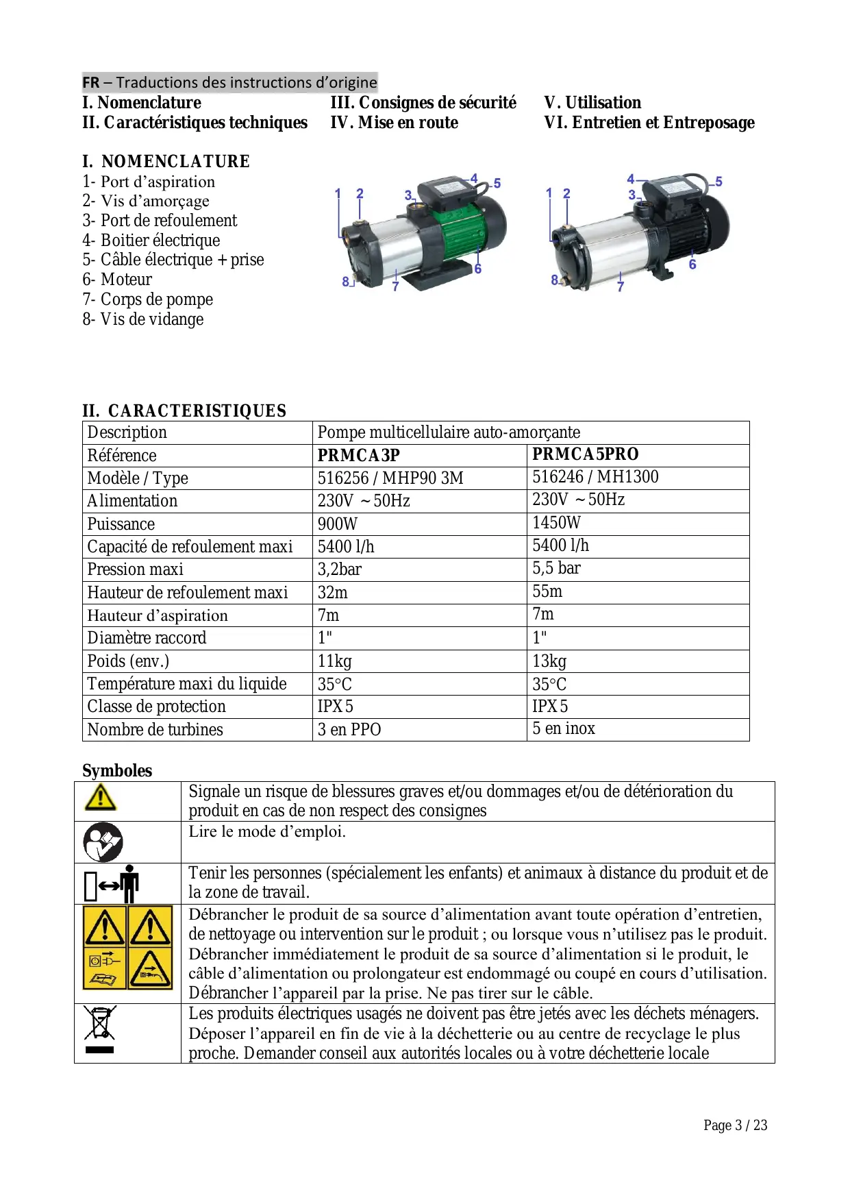 Cette pompé doit être installée selon les normes et legislations locales en vigueur et par du personnel qualifié, nous vous conseillons de vous adresser à un électricien qualifié.