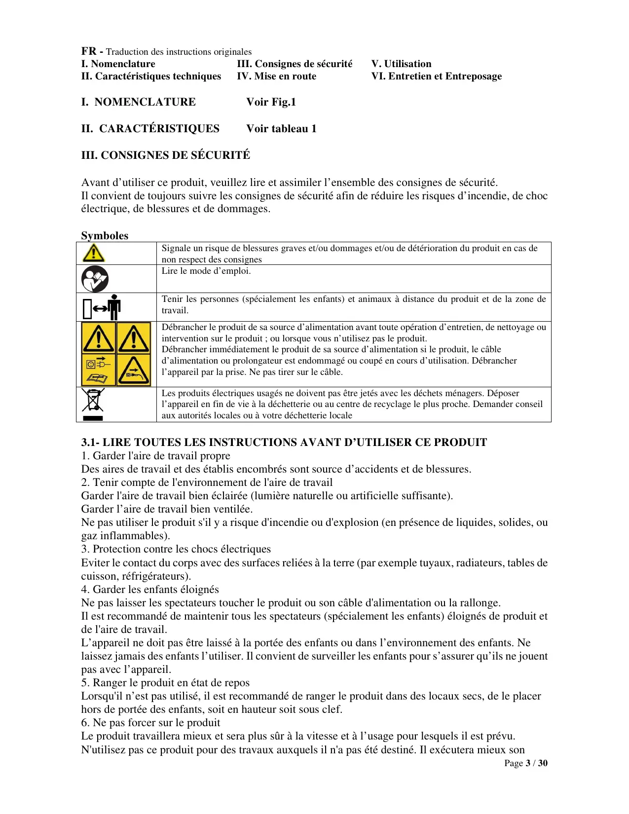 3.1- LIRE TOUTES LES INSTRUCTIONS AVANT D'UTILISER CE PRODUIT