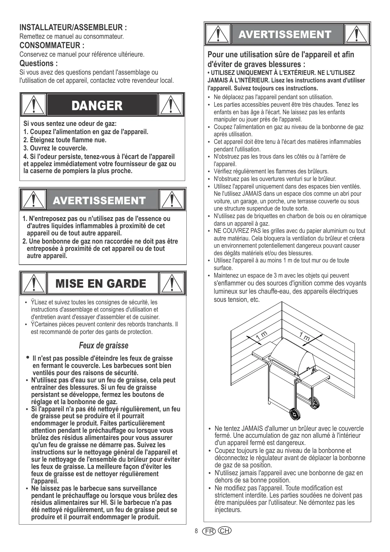 « ŸLisez et suivez toutes les consignes de sécurité, les instructions d'assemblage et consignes d'utilisation et d'entretien avant d'essayer d'assembler et de cuisiner.