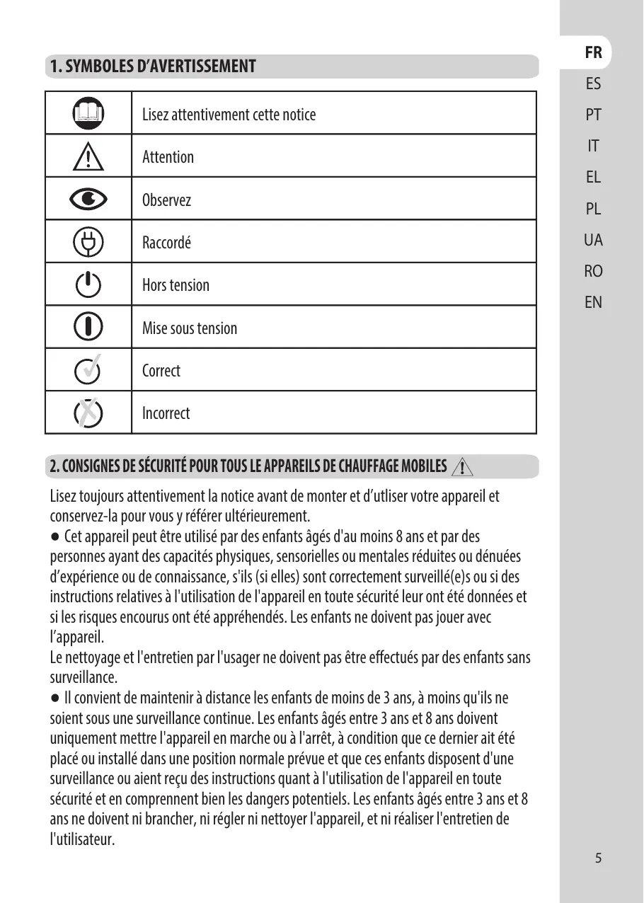 © ne pas utiliser cet appareil de chauffage s’il est tombé;