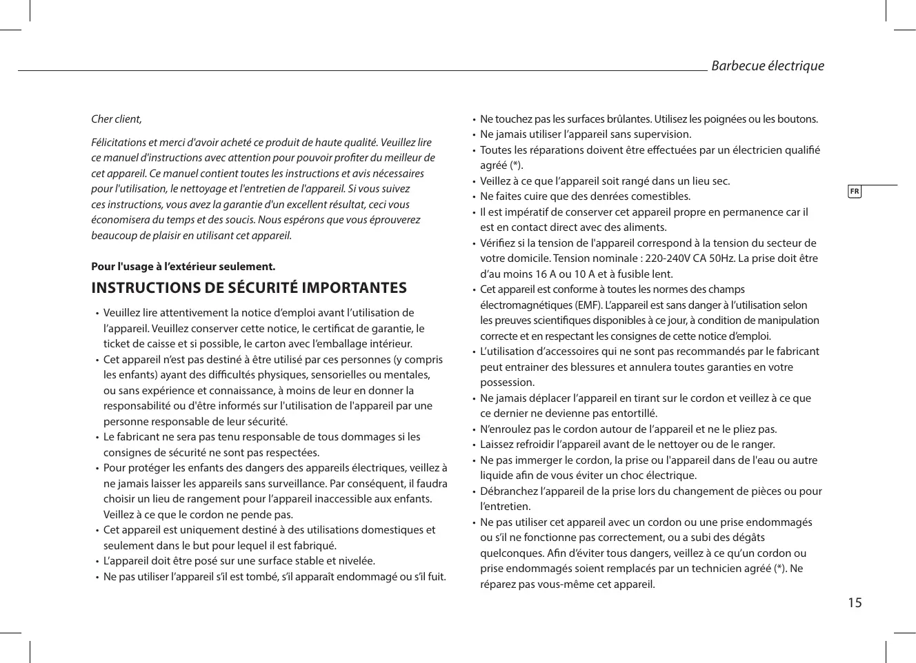 - Eneldom cas, il ne faut utiliser du charbon ou tout autre combustible solide ou liquide pour faire fonctionner le grill.