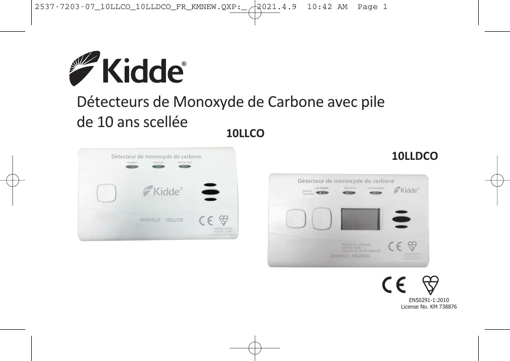 10LLCO, 10LLDCO - Détecteur de monoxyde de carbone KIDDE - Notice d'utilisation et mode d'emploi gratuit