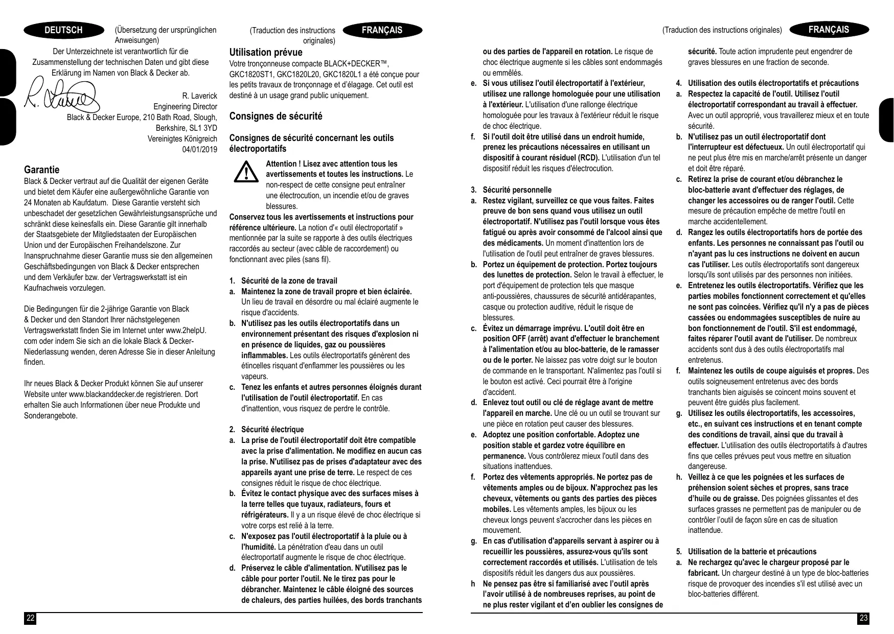 MODE D'EMPLOI GKC1820ST1 GKC1820L20 GKC1820L1 BLACK & DECKER