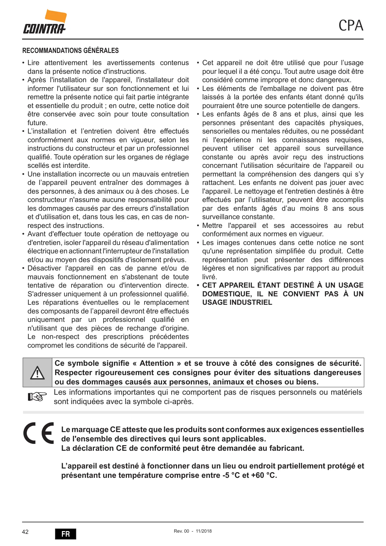 Retrouvez gratuitement la notice de l'appareil CADI 11L CPA COINTRA au format PDF.