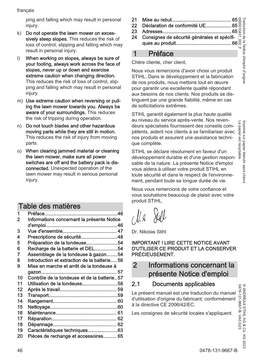 RMA 235 PACK AK20*AL101 - Tondeuse électrique STIHL - Notice d'utilisation et mode d'emploi gratuit