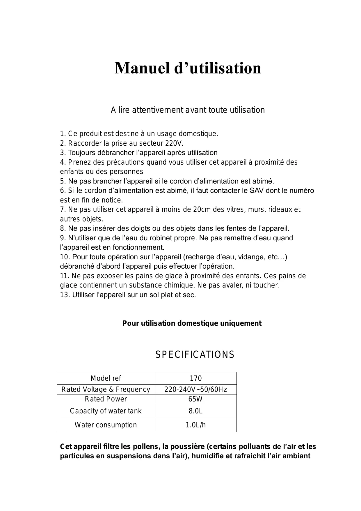 Retrouvez gratuitement la notice de l'appareil 170 - 3 EN 1 OFRESH au format PDF.