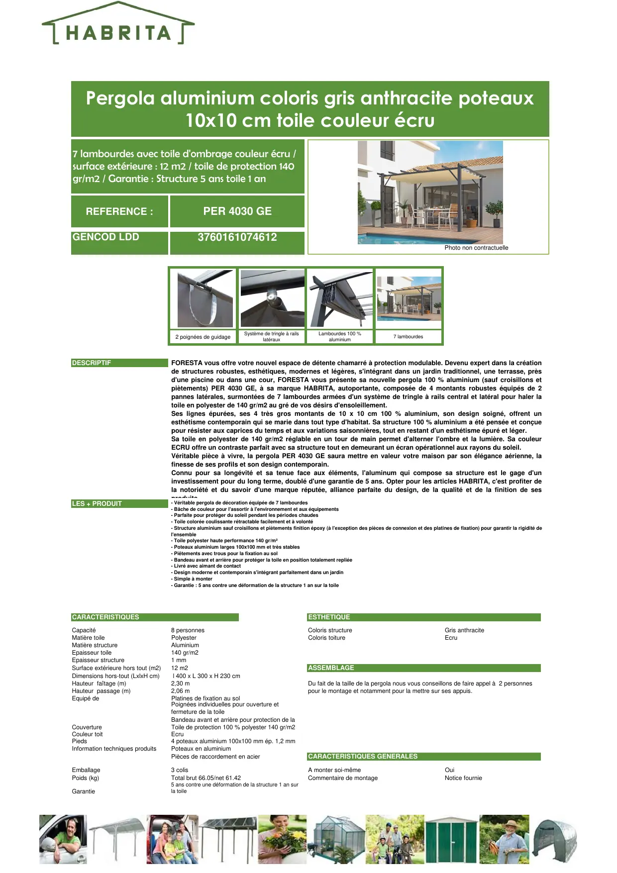 PER 4030 GE - Pergola HABRITA - Notice d'utilisation et mode d'emploi gratuit