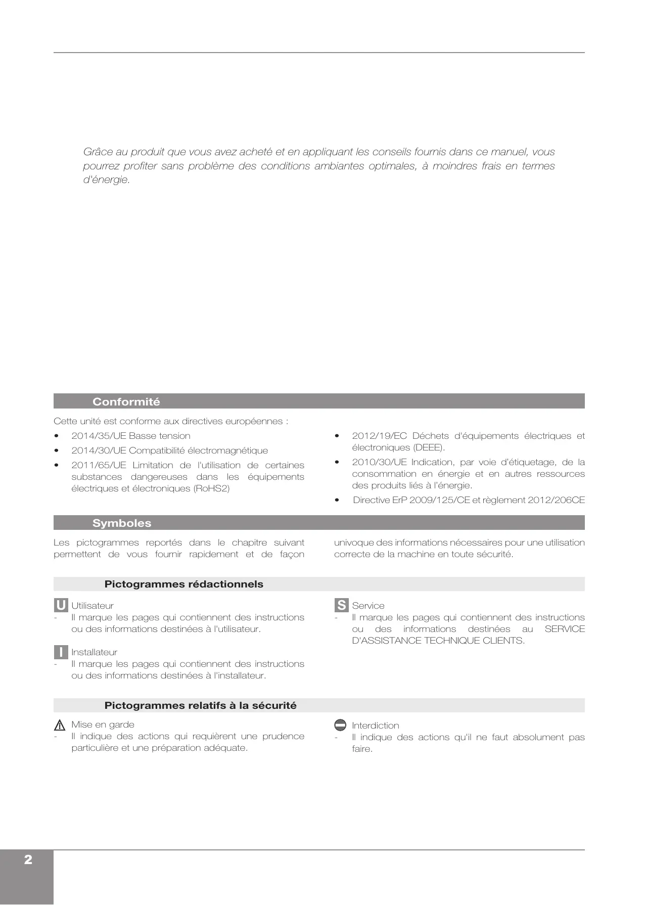 À L'appareil ne doit pas être installé dans des locaux où se développent des gaz explosifs ou avec des conditions d'humidité et de température en dehors des limites maximales définies sur le manuel d'installation.