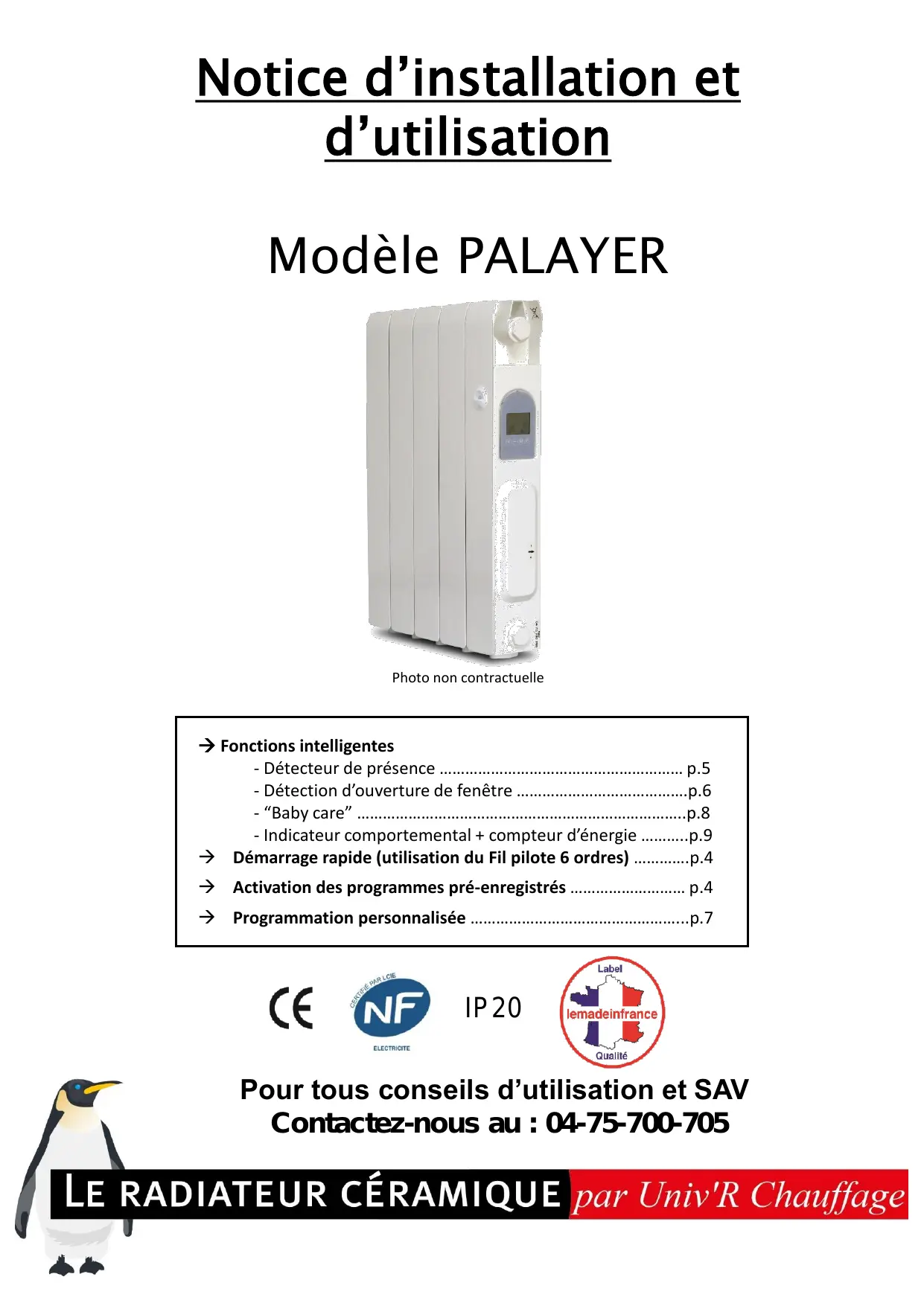 PALAYER - Radiateur électrique UNIVR - Notice d'utilisation et mode d'emploi gratuit