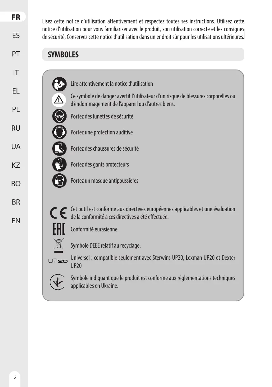 MODE D'EMPLOI UP20 20 V - 20VJS2-28.1 DEXTER