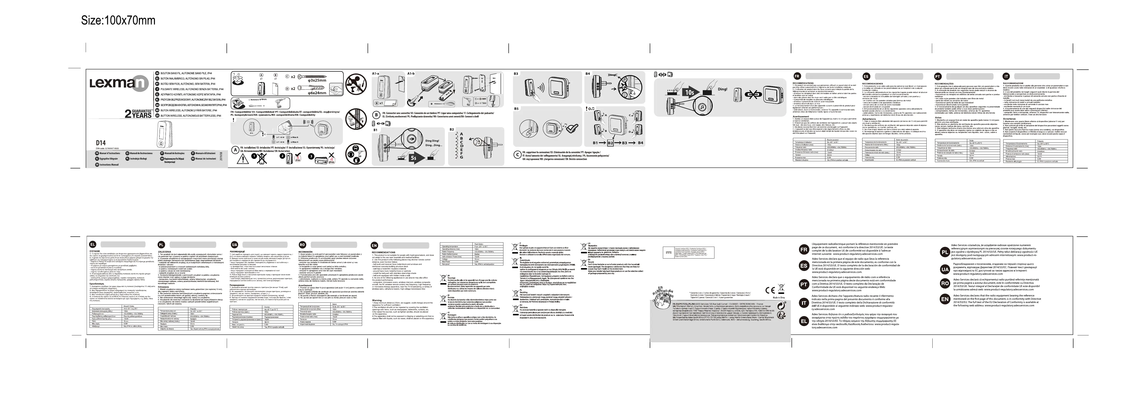 D14 - Sonnette sans fil LEXMAN - Notice d'utilisation et mode d'emploi gratuit