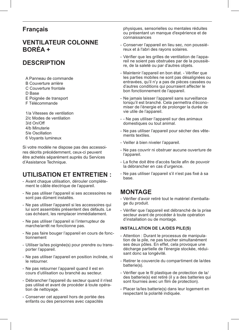 BOREA + - Colonne SUPRA - Notice d'utilisation et mode d'emploi gratuit